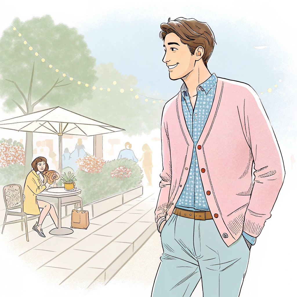 데이트에는 파스텔톤 가디건이 좋아요. 부드러운 인상을 주고, 사진 찍을 때도 밝은 느낌을 연출할 수 있어요. 연청 팬츠나 베이지 치노팬츠와 매치해보세요.