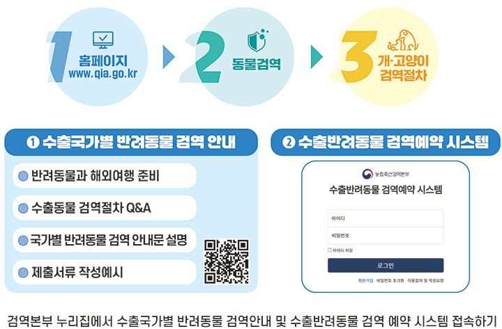 A. 검역본부 사이트에서 국가별 준비사항을 확인하실 수 있어요.