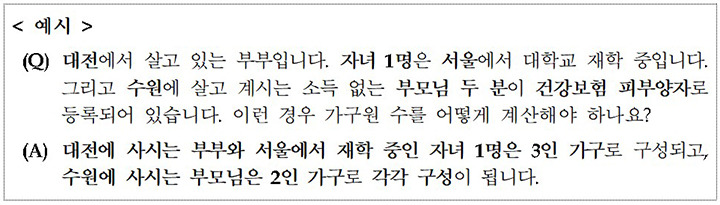 - 건강보험료 합산액 기준표 이하인지 확인(외벌이/다소득원 구분).