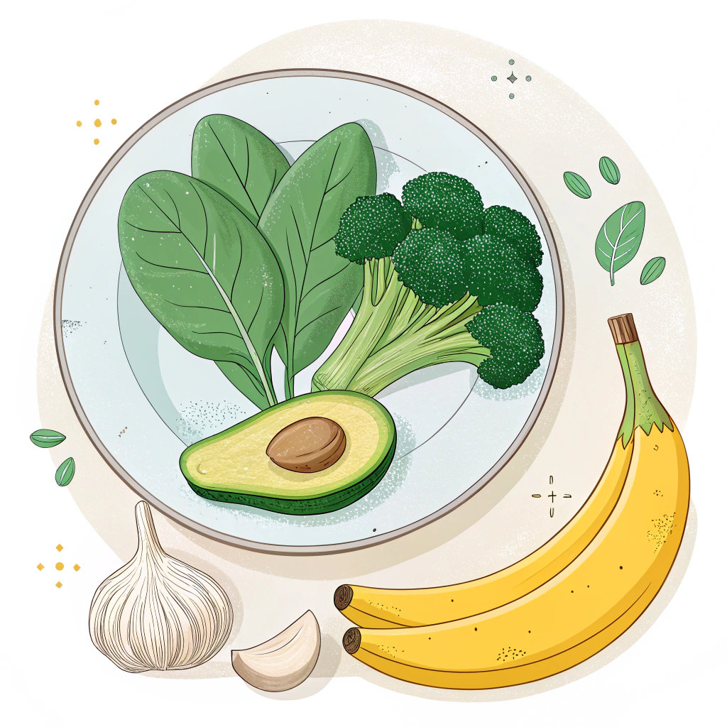 - 🥬 칼륨이 풍부한 채소: 시금치, 브로콜리, 아보카도