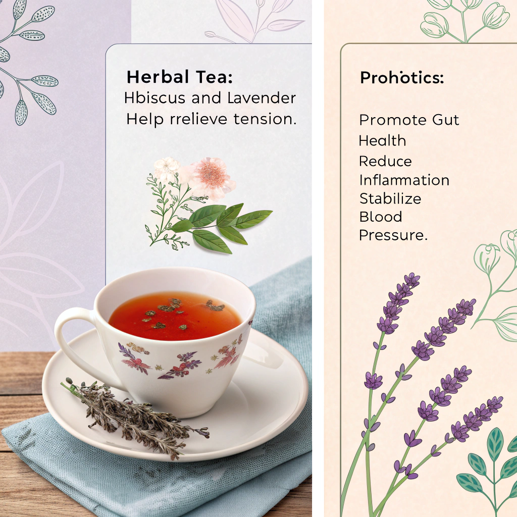 - 🍵 허브차: 히비스커스, 라벤더차 등은 긴장을 풀어줘요