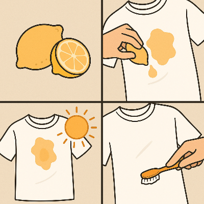 ③ 레몬즙 + 햇빛 자연 성분을 활용하는 방법으로, 레몬즙을 누런 부분에 바른 후 햇빛에 1~2시간 말리면 표백 효과가 생겨요.