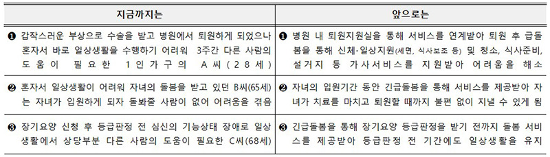 - 단기 긴급 돌봄 (예: 질병, 사고 등)