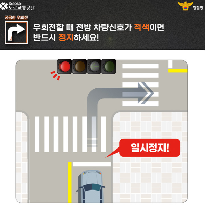 우회전할 때도 적색 신호라면 일시정지 후 진행하셔야 해요. 2023년 도로교통법 개정 이후 우회전 관련 사고가 급증했고, 이에 따라 경찰은 일시정지 의무를 적극 계도 중이에요.