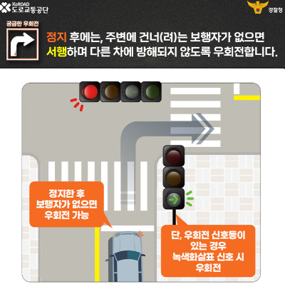 - 🚗 비보호 좌회전, 우회전 시는 정지 후 천천히 진행