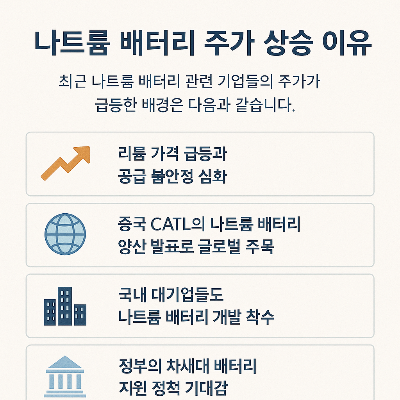 최근 나트륨 배터리 관련 기업들의 주가가 급등한 배경은 다음과 같습니다.