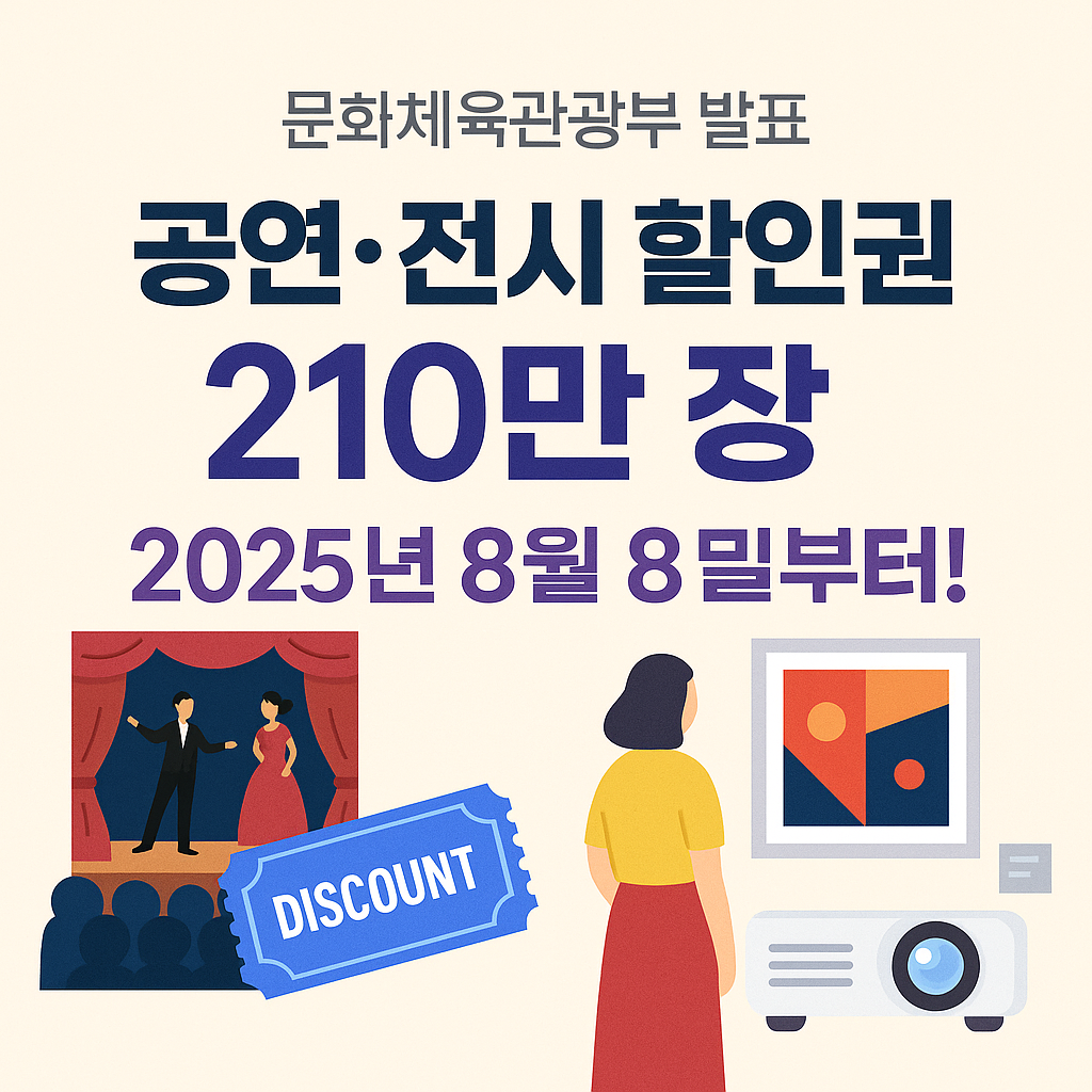 2025년 8월 8일부터 영화에 이어 공연·전시 관람도 할인권으로 저렴하게 즐길 수 있게 되었어요! 문화비가 부담스러워 망설였던 분들에게는 정말 반가운 소식인데요 😊
