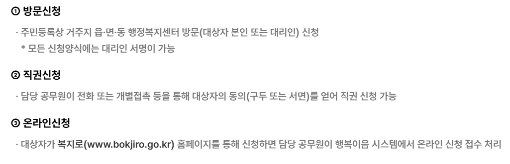 - 신청자는 수급자 자격 유지 상태여야 지원 가능