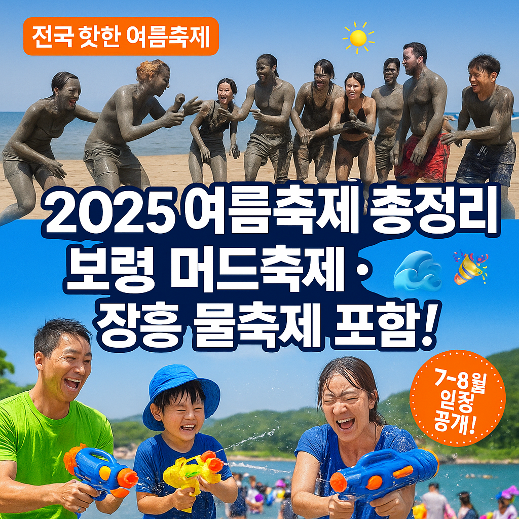 2025년 여름, 어디로 떠나야 할지 고민되시죠? 무더위를 시원하게 날릴 보령 머드축제와 장흥 물축제를 포함해 전국 각지에서 열리는 축제 정보를 총정리했어요. 날짜, 장소, 추천 포인트까지 모두 담았으니 여행 계획에 꼭 활용해보세요 😊