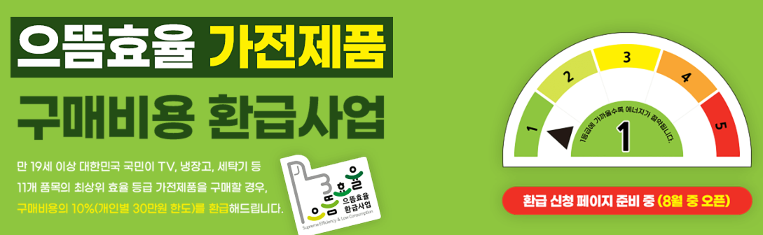 2025년 7월 4일 이후 구매한 고효율 가전제품에 대해 최대 30만 원까지 환급받을 수 있는 으뜸효율 환급제도가 시행되고 있어요. 전기요금이 오르고 있는 요즘, 에너지 효율 높은 제품을 사면 전기요금도 줄이고, 현금도 돌려받을 수 있는 절호의 기회랍니다 😊