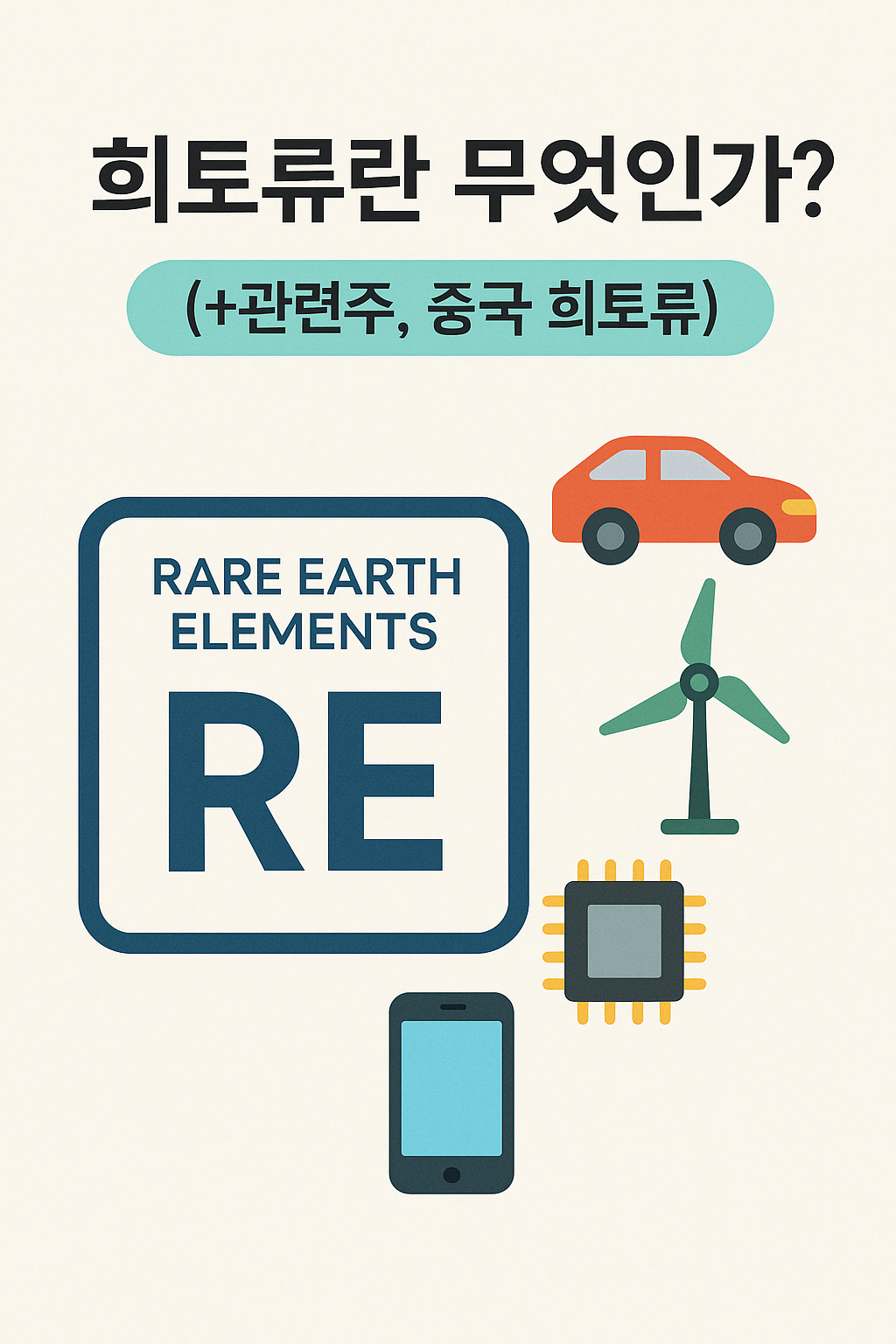 희토류는 전기차, 스마트폰, 반도체, 풍력발전 등 다양한 산업에 쓰이는 핵심 첨단 자원이에요. 특히 중국이 압도적인 비중을 차지하고 있어 공급 리스크 이슈와 관련 투자 관심이 동시에 커지고 있어요.